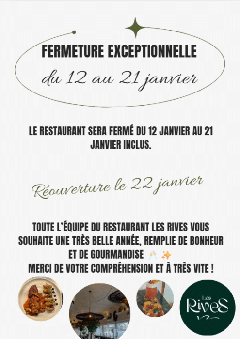 Réservez facilement en ligne votre table au restaurant Les Rives. En quelques clics, profitez d’un service rapide et pratique pour vivre une expérience gastronomique unique, que ce soit pour un déjeuner, un dîner ou une occasion particulière.